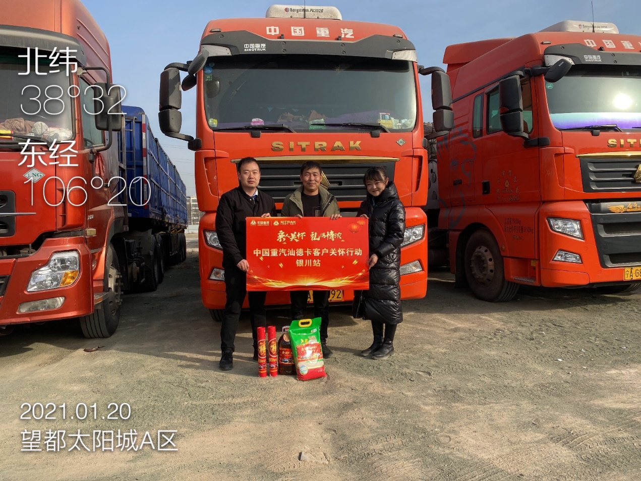 牛年春节将至,中国重汽给卡友们准备的礼物也如期到来:2021年1月15日至3月31日,中国重汽开展客户关怀行动,期间,中国重汽豪沃、汕德卡、豪沃轻卡等品牌将组织形式多样的活动,将“亲人”服务关怀送到广大用户手中。