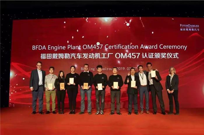 庆典上,对OM457发动机认证测试与现场审核阶段踊跃出的有着突出贡献的团队与个人进行颁奖。